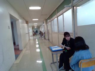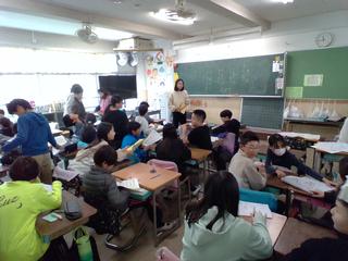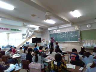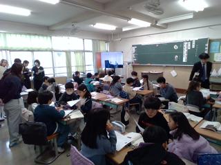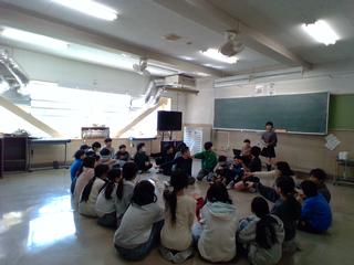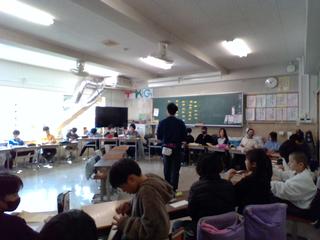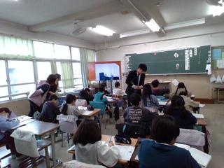3年生の国語。4月に本校に初任としてきた先生の研究授業です。同学年以外の先生も交代で参観に来ています。放課後は授業の振り返りです。
