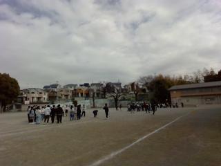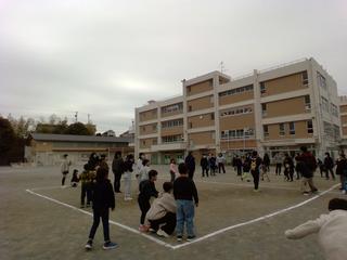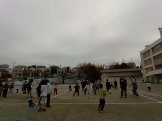 一年間通じて行ってきた1年生と6年生の交流。ボールゲームをしていますが、いろいろな場所で各々ふれあっています。