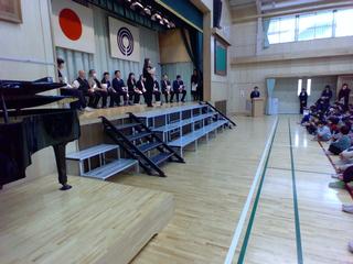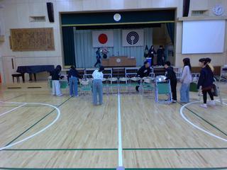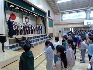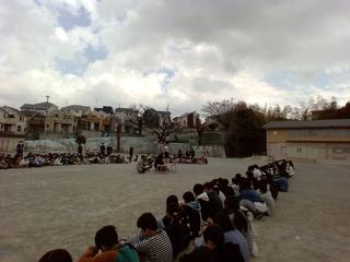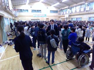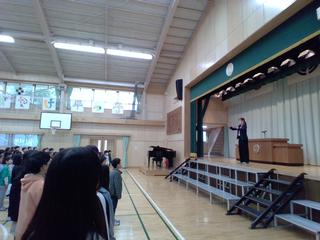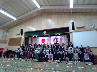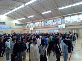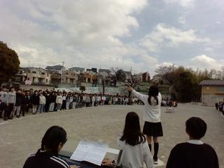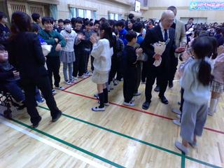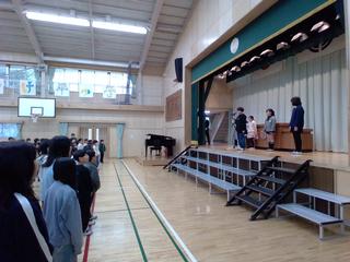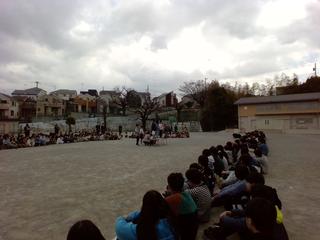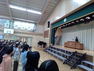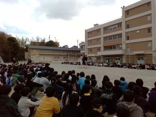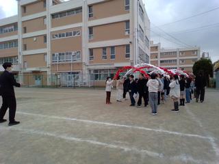 今年度最後の時間は「離退任式」です。今年度で退職する職員と、異動する職員とのお別れ式です。雨が降ってきました。保護者や地域、卒業生の皆様にたくさん来ていただきました。ありがとうございました。