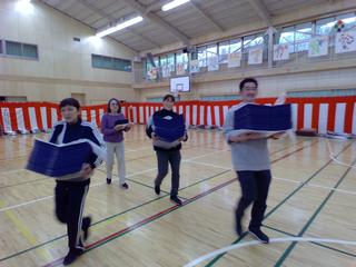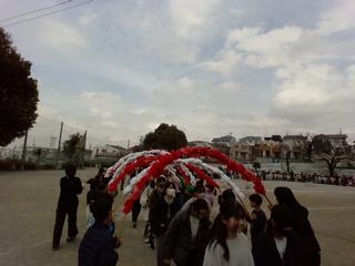 6年生の学年集会。なつかしのクラス対抗「玉入れ」です