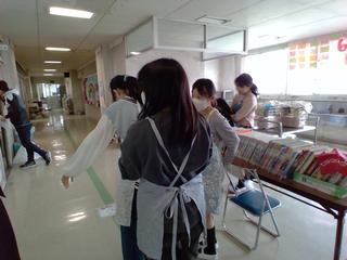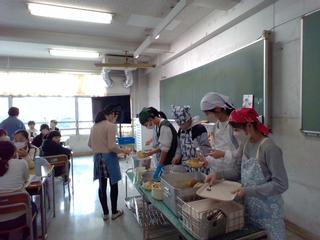 最後の給食 今週6年生の給食当番は、いつもの給食着ではなく、エプロンスタイルです。 文化祭の食べ物コーナーみたいですね。