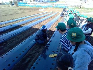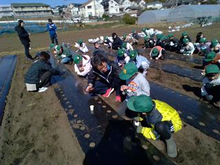 2年生は今年度最後の畑に3年生の夏に収穫する枝豆の種を撒きに行きました。国語の学習と総合的な活動の時間とのカリキュラムです。「平の宝」である食農教育の一つです。収穫するまでには、草抜きはもちろん、成長の過程もしっかりと観察します。