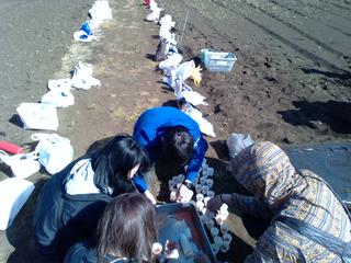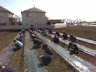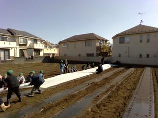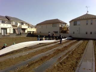 カラスに大切な種を食べられないように、シートを敷きました。さらにこの上からネットも被せます。