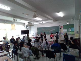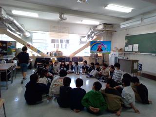 クラス集会も。ゲームやクイズをするだけではなく、右側は一人ひとり一年間の思い出を話していました。