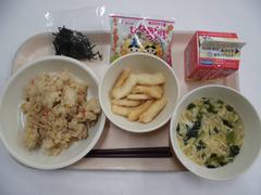 3月2日 月曜日(ちらしごはん、きざみのり、いかのよしのあげ、やよいじる、ひなあられ、ぎゅうにゅう)