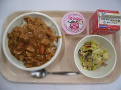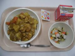 3月3日 火曜日(チキンカレー、ピクルス、かたぬきチーズ、ぎゅうにゅう)