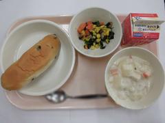 3月4日 水曜日(ぶどうパン、ポテトグラタン、やさいソテー、ぎゅうにゅう)