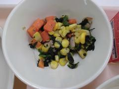 3月17日 火曜日(ビビンバ、わかめとコーンのスープ、ミニフィッシュ、ぎゅうにゅう)