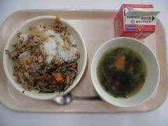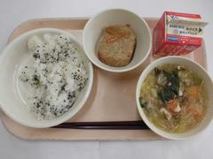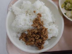3月9日 月曜日(そぼろごはん、しおだれキャベツ、けんちんじる、ぎゅうにゅう)