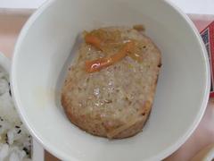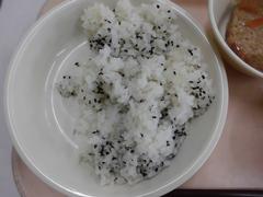 3月11日 水曜日(ごはん、ごましお、ハンバーグのやさいあんかけ、はるさめのちゅうかスープ、ぎゅうにゅう)