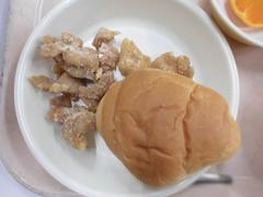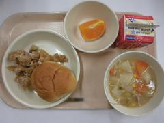 3月18日 水曜日(ロールパン、とりにくのからあげ、みそワンタンスープ、せとか、ぎゅうにゅう)