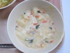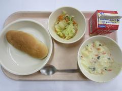 11月20日 木曜日(きなこパン、クリームシチュー、ボイルやさい、わふうドレッシング、ぎゅうにゅう)