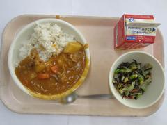 11月11日 火曜日(むぎごはん、チキンカレー、だいこんときゅうりのちゅうかづけ、ぎゅうにゅう)