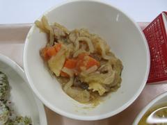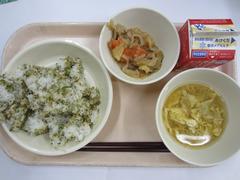 11月12日 水曜日(ごはん、ふりかけ、にくじゃが、かきたまじる、ぎゅうにゅう)