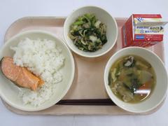 11月14日 金曜日(ごはん、さけのしおやき、はくさいのおかかあえ、めったじる、ぎゅうにゅう)