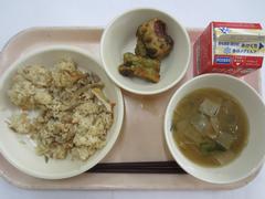 11月18日 火曜日(ごもくごはん、ちくわのいそべあげ、みそしる、ぎゅうにゅう)