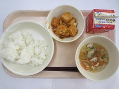 11月19日 水曜日(ごはん、なまあげのしせんに、はるさめのちゅうかスープ、ぎゅうにゅう)