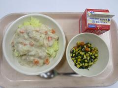 11月27日 木曜日(チキンクリームライス、やさいソテー、ぎゅうにゅう)