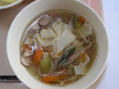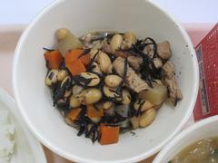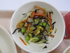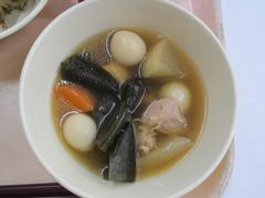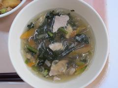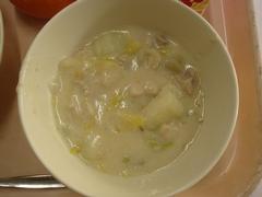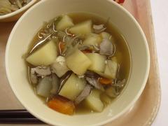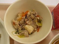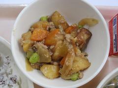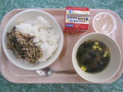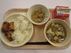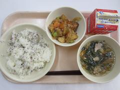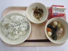 12月1日 月曜日(ごはん、あかしそふりかけ、なんばんに、はるさめスープ、ぎゅうにゅう)