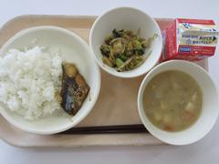 12月5日 金曜日(ごはん、さばのカレーあげ、はくさいのおかかあえ、ぶたじる、ぎゅうにゅう)