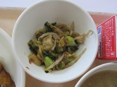 12月11日 木曜日(ぶたにくともやしのオイスターソースどん、わかめとコーンのスープ、「かわさきそだち」のなしゼリー、ぎゅうにゅう)