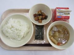 12月12日 金曜日(ごはん、やきのり、ぶりのつけあげ、のっぺいじる、ぎゅうにゅう)