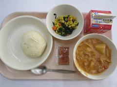 12月10日 水曜日(きなこパン、カレーシチュー、ボイルやさい、わふうドレッシング、ぎゅうにゅう)