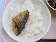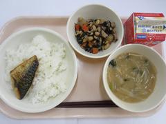 12月16日 火曜日(ごはん、さばのしおやき、ごもくまめ、みそしる、ぎゅうにゅう)