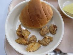 12月17日 水曜日(ロールパン、とりにくのごまあげ、ワンタンスープ、りんご、ぎゅうにゅう)