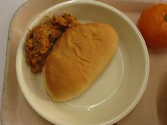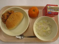 12月23日 火曜日(ツナサンド、はくさいのクリームシチュー、みかん、ぎゅうにゅう)