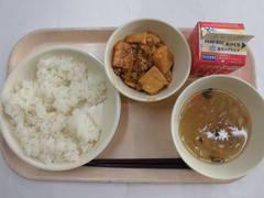 2月24日 火曜日(ごはん、なまあげのしせんに、はるさめのちゅうかスープ、ぎゅうにゅう)
