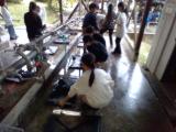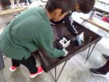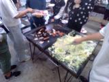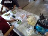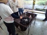 鉄板の準備、野菜を切って準備、火おこし準備それぞれの担当が