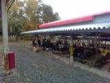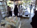 小雨が降っていましたが、荷物をバスに積んで元気に出発しました。