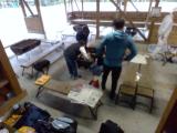 地域の持田さんにお話を伺ったり、簡易トイレを組み立てたりして