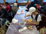 面絵付け、さると猫のお面に色をつけたり、模様をつけたりしました。