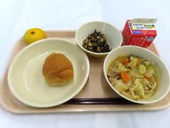 ミニロールパン、五目豆、ほうとう、みかん、牛乳