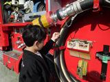 実際に、防火服を着てみたり、消防車の仕組みや消火する際に使う道具などについて教えていただいたりしました。