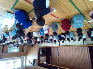 9月30日の朝会では、校長先生からさくら小学校のなりたちについて話を聞きました。