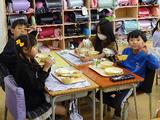 今日は、今年度最後の自校献立で「ごはん・チゲスープ・ヤンニョムチキン・ジョアマスカット味」でした。今回のメニューを考えたのは6年生の女子です。家庭科の学習で、みんなに美味しく食べてもらいたいと考えたメニューが、栄養士さんや給食調理員さんの力を借りて実現させることができました。本人からは「韓国料理を意識して考えました。たくさん食べてください」というメッセージが全校に向けてありました。