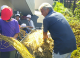 5年生は、畑ボランティの方々に協力していただきながら、稲刈りを行いました。
