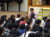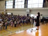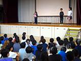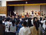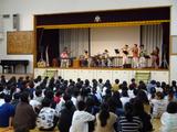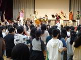 今日の音楽鑑賞教室では、ラテン音楽のリズムを楽しみました。アフリカの打楽器のみによる音楽から始まり、ブラジルのサンバ、ペルーのサルサなどラテン音楽のリズムや音の響きを実際の演奏から感じることができました。リズミカルなラテン音楽に子供たちの体は自然と動き始め、ラテン音楽の楽しさを体で感じていました。みんなで体を動かすコーナーでは、楽器のリズムに合わせて手拍子をしたり、ステップを踏んで踊ったりしてラテン音楽を全身で楽しむことができました。奏者と一緒にリズムに乗って歩き始める低学年がいたり、先生たちも一緒に踊ったりしてみんなで楽しみました。