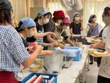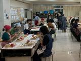 当日は、最初に給食を調理して下さっている委託業者の方と学校栄養職員の方にお話をしていただきました。食材や保存方法への拘り、丁寧な調理過程、献立への工夫等を知る良い機会となりました。お話の後は、子供達と同じように数人が「給食当番」となり協力して配膳を行いました。実食では「美味しい!」という声がたくさん聞こえてきました。実際に参加された方の人数よりも多めに用意されていた給食は見事に全て完食!!参加者の方に書いていただいたアンケートには「美味しかった」「安心安全だと知る事ができました」と、今夏などはとても暑い過酷な作業環境の中で子供達の為に頑張って美味しい給食を作ってくれている調理員さんへの感謝の言葉がいっぱいでした。改めて、給食に関わってくださる皆様、いつも本当にありがとうございます。