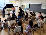 2回目のきらぽんは場所を変えてD棟2階の図書コーナーで開催しました。ハロウィンが1ヶ月後にあるので、朝のキラぽんの時に2年生のクラスで「怖い話…聞きたい?」と子供たちに聞いてみたところ「聞きたーい!」とリクエストがありました。そこで、今回はちょっと怖い話を選びました。集まってくれたのは30人くらい!みんなドキドキしながらお話を楽しんでくれたようです。