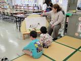 今回は、図書室で開催しました。キラぽんメンバーが2年生の時に教室で初めて読んで大好きになったこの「からすのぱんやさん」。来てくれた2人の児童は「パンがおいしそうでおなかすいちゃうんだよなあ!!」なんて言いながら、ほぼ貸し切りの畳コーナーでのんびり家にいるときみたいにリラックスして聞いてくれました。