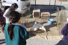 1・2年生が移動動物園に参加しました。エサをあげたり、なでたりしながら、ポニー、ヤギ、モルモット等、いろいろな種類の動物とふれあいました。「やさしくなでてあげよう」「少しずつエサを口に持っていこう」・・・優しい言葉がたくさん聞かれ、また笑顔いっぱいの子どもたちでした。