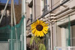 校庭に、ひまわりが・・・。季節は冬ですが、しっかり太陽に向かって咲いています。