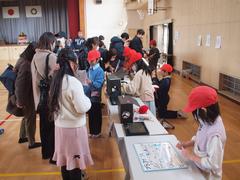 6年生のお兄さんお姉さんの協力を得て、この日1年生はGIGA開きの学習をスタートさせました。まずは、自分のメールアドレスの入力とパスワードの入力をすることによって、端末を自分のものとして使ったりデータを保存したりできるようになります。とはいえ、1年生にキーボードに入力やアルファベットの文字入力はなかなか難しいものです。そこで、本校では、6年生に協力してもらい、この設定のお手伝いをしてもらっています。どの子も6年生がそばで優しく教えてくれるので、端末の設定を無事に済ませることができました。