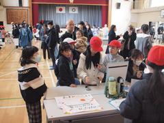 3年生は、体育館にて学習発表会を行いました。おまつりの出店形式で、見に来てくれた方々を楽しませる内容がもりだくさん詰まっていました。中でも、100周年記念式典の際に作ったお神輿を披露するだけでなく、子どもたちと一緒になって担ぐこともできました。始まりと終わりには、恒例の一本締めをしました。