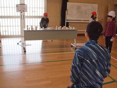 全体の話では、災害は、担任の先生がいるときだけでなくいないときにも起こる可能性があること、自分で考えて避難することが大切であること、火災時には、ハンカチ等を口元に当てることが大切であることを話しました。