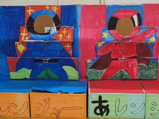 計画委員会の取り組みので100周年を盛り上げるための「あさひこレンジャーの顔はめパネル」が完成しました。子どもたちの昇降口に設置してあり、100周年を記念して、撮影したいときには、GIGA端末を持ってきてください、とのことです。